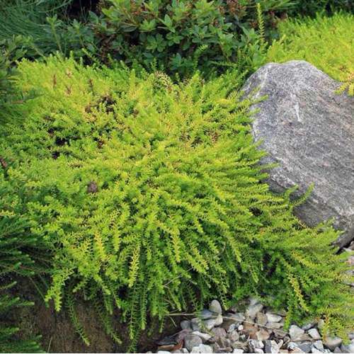 Этому великолепному почвопокровнику подойдут соседи, такие как можжевельники, карликовые хвойные формы, а также декоративные цветы: гвоздики, обриета, шиловидные флоксы и колокольчики.