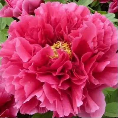 Основная "изюминка" этого типа пиона – его великолепные цветки. На каждом растении может быть от 30 до 70 цветков! Они имеют полумахровую структуру и крупный размер, диаметром от 20 до 25 сантиметров. Окраска цветков ярко-розово-красная, с желтым центром. Лепестки более гофрированные, чем у других пионов, придают им особую изящность и привлекательность. Аромат цветов легкий и пряный, создавая неповторимую атмосферу вокруг растения.