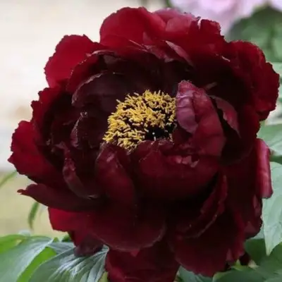 Интенсивный рост позволяет быстро создать живописный уголок в вашем саду. Саженцы пиона древовидного «Полночь» обладают такими характеристиками как размер цветка 16х6 см. Цветы имеют форму лотоса и очаровывают своими роскошными лепестками, окрашенными в темный, почти черный, цвет. Сердцевина цветка выглядит украшением из густых золотистых тычинок.