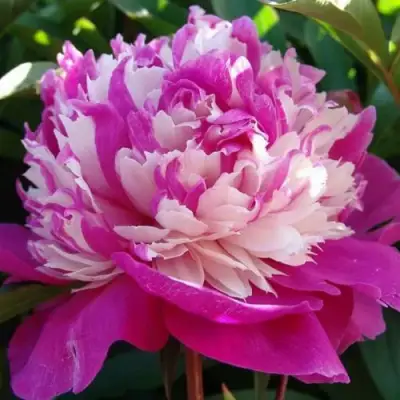 Цветы пиона 'Селебрити' поразят любого своим изяществом и колоритом. Махровые цветы средней величины (диаметр 15-17 см) манят своим ярко-розовым и белоснежным оттенками. Двухцветные лепестки расположены в хаотичном порядке, что создает эффект живой краски, словно кисть художника касалась каждого лепестка. Приятный аромат добавляет особую привлекательность, делая этот сорт идеальным для создания романтического настроения или наслаждения в саду.