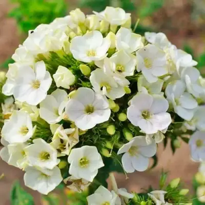 Флокс Грин Лиф известен своими овально-коническими соцветиями, которые достигают размеров до 20 см в диаметре. Эти плотные цветы формируются на прочных стеблях, что обеспечивает их великолепный внешний вид и долговечность. Пятилепестковые звездчатые соцветия обладают нежным, приятным ароматом, который создает атмосферу уюта и естественной красоты. По цвету — они белые с зелеными кончиками, что добавляет яркий акцент в общую палитру вашего сада. Средний размер цветков составляет около 3 см в диаметре, а их колесовидная форма делает флоксы наиболее привлекательными для любителей ландшафтного дизайна.