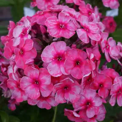 Цветы флокса «Старс Энд Страйпс» — это нечто поразительное. Их окраска представляет собой гармоничное сочетание кораллово-розового оттенка с карминным глазком. Особенностью лепестков являются грациозные бледные серебристо-молочные штрихи, которые делают каждый цветок еще более привлекательным. Аромат, исходящий от этого флоксa, средний, и его нежный запах создаст атмосферу уюта и притягательности в вашем саду.