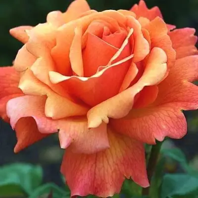 Цветок этой розы отличается яркой и насыщенной окраской. Бутон окрашен в оранжево-красный цвет, а по мере распускания цветок становится абрикосово-малиновым с розовым оттенком. Основная окраска цветка - оранжевая. Бутон имеет конусовидную форму, а распускающийся цветок - чашевидную форму. Диаметр цветка составляет 8-11 см. Цветок махровый, состоящий из 25-40 лепестков. Цветки могут быть одиночными или располагаться в соцветиях, а на одном стебле может распускаться от 5 до 10 цветков. Они обладают приятным фруктовым ароматом, который является сильным и интенсивным.