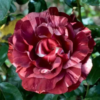 Брауни формирует гибкие побеги до 1,5–1,8 м, что позволяет выращивать её у опор: арок, пергол, стен и декоративных конструкций. Куст среднерослый, аккуратный, с плотной тёмно-зелёной листвой, которая подчёркивает насыщенный цвет бутонов. Цветки крупные, примерно 9–10 см, махровые, собраны в небольшие кисти. Окраска — главный «магнит» сорта: глубокий винно-красный тон с шоколадными и кремовыми штрихами. По мере распускания оттенок становится мягче, приобретая пряные кофейные нюансы. Аромат нежный, спокойный, без удушающей насыщенности — комфортный для повседневного сада и отдыха на участке.