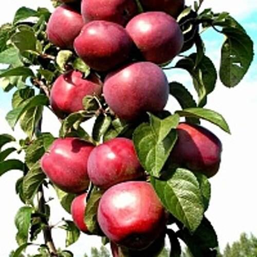 Саженцы яблони колонновидной сорта "Московское ожерелье"- сорт является уникальным и отличается высокой урожайностью. Дерево достигает высоты до 2,5 метров, имеет плотную и колоновидную крону, что позволяет эффективно использовать пространство сада.